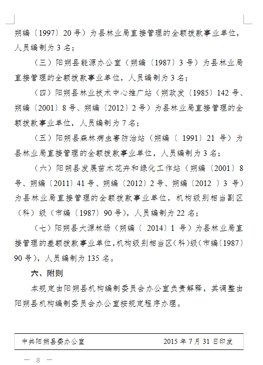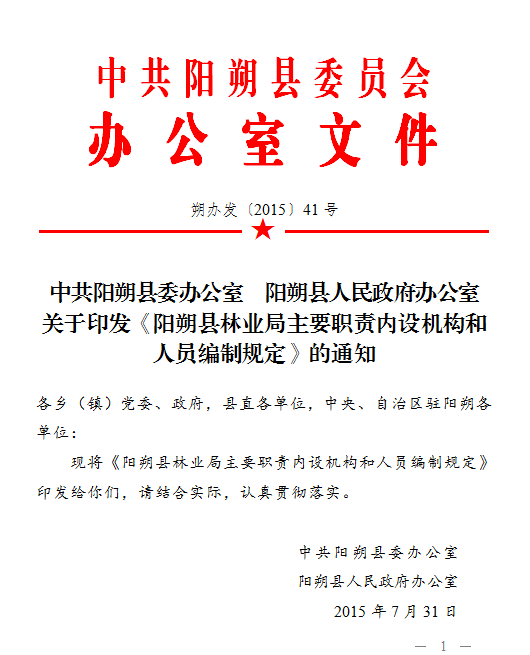 中共阳朔县委办公室阳朔县人民政府办公室关于印发《63365主要职责内设机构和人员编制规定》的通知