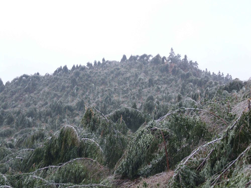 2.折断植株在50%以上的林分(包括整株倒下的林木),采取皆伐后更新的方法,把全部林木砍伐后重新种植杉木或其它树种。